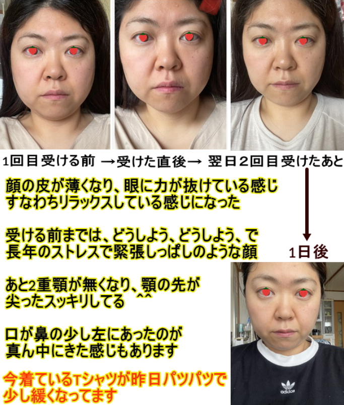 日中はモヤモヤや頭重感はなく、急に気分が落ち込むことも涙がこみあげることもなく、軽快に過ごせました。施術して数日経過した今もスッキリ感は持続しています。