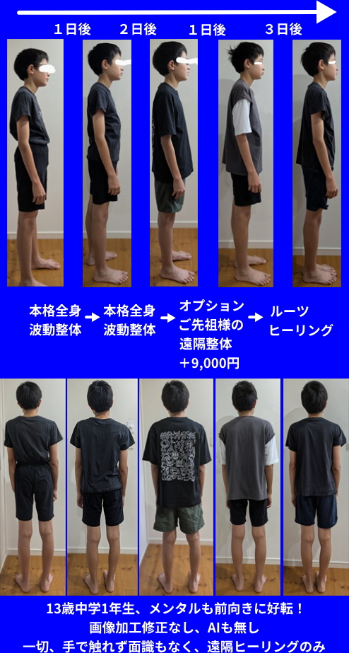 中学生のお子さまのケースでは、7日ほどで「姿勢が変わった・元気が戻った」と親御さんからご報告をいただいています