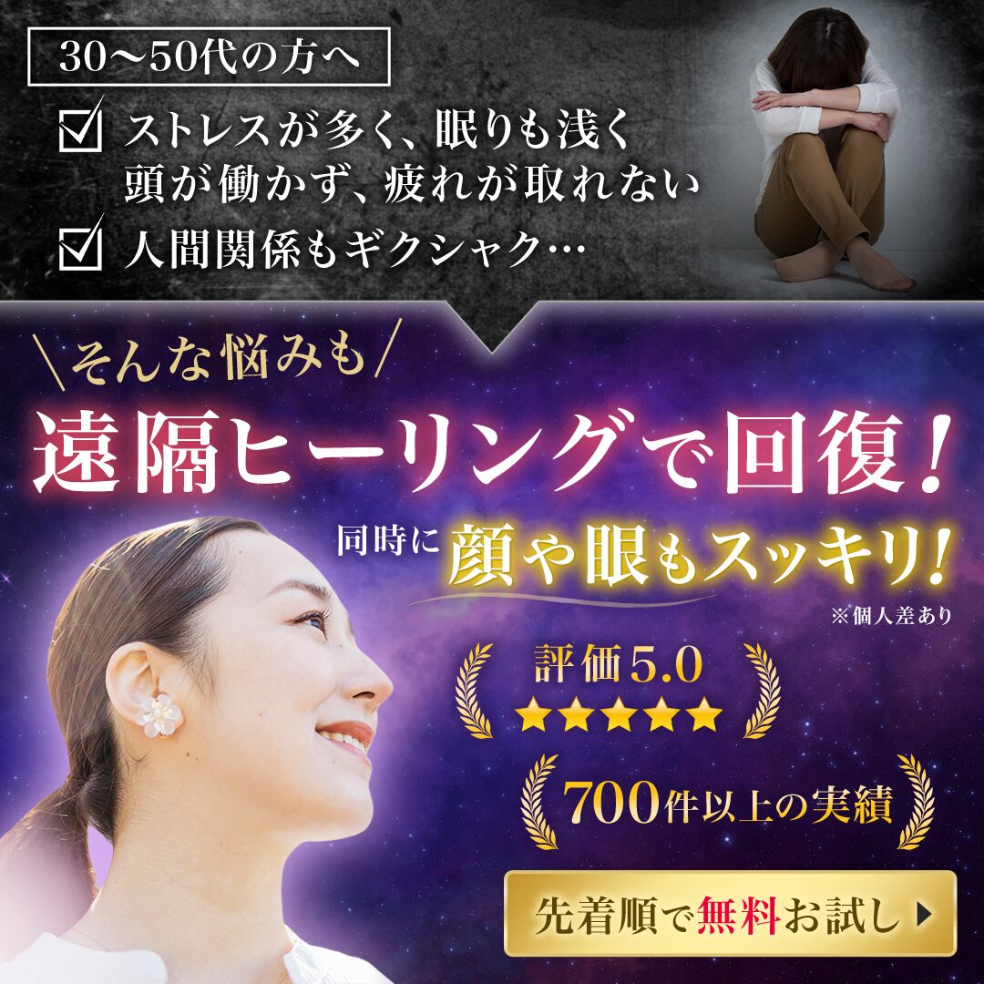 脳疲労とメンタルのヒーリングを受けて頂いたご感想(抜粋) 初めは確かに寝ても疲れが取れない感じでした。 今朝はスッキリ起きられてます! 顔つき、確かに違ってました。 こんなに変わるものなんですね。今日なんですが、仕事がめっちゃ捗っ[…]